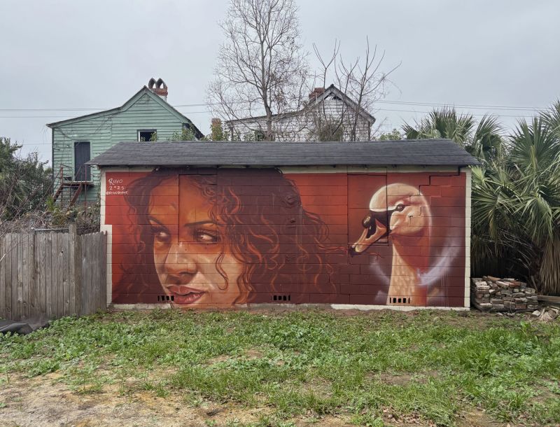 Painted on a Spruill Avenue building, Kruuk’s Gullah is intended to the reflect the roots, heritage, and preservation of sea island culture.